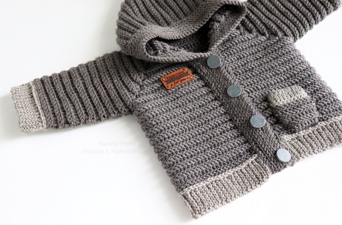 Möchtest Du eine Jacke für dein Kind häkeln, die wie gestrickt aussieht? Dann ist diese Häkelanleitung genau für Dich gedacht. Eine einfache Kinderjacke mit einer Kapuze und Tasche vorne, die man sehr schnell und einfach hinbekommt.