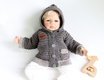 Es wird erklärt: Material, Berechnung für die Gr. 50-128, Rücken, Vorderteile, Ärmel, Kapuze, Tasche, Zeichnung, ca. 4 MB, über 80 Fotos von Arbeitsschritten, 33 Seiten.