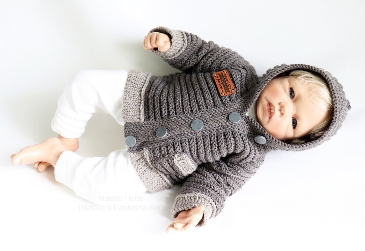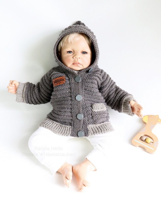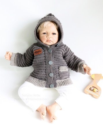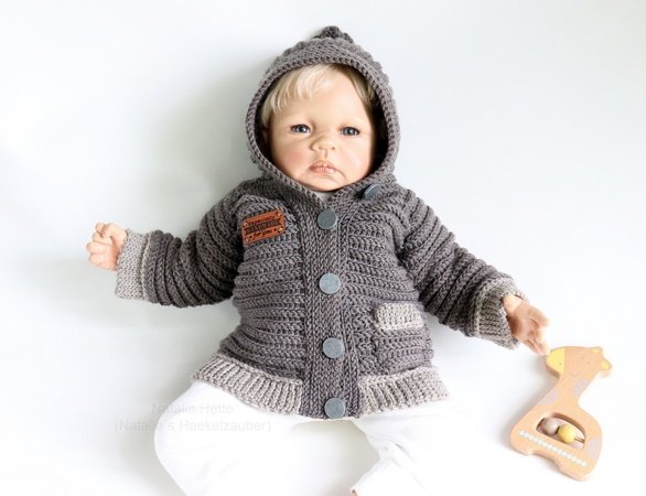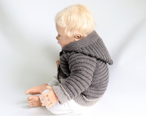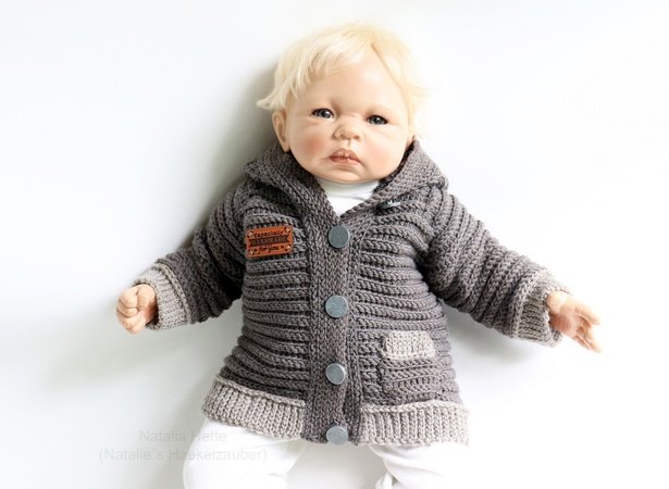 Diese PDF-Häkelanleitung besteht aus bebilderter Anleitung zum Häkeln von Baby- oder Kinderjacke für Gr. 50-128 (0 M. bis ca. 5-jähriges Kind) im stricklook. Die Jacke kann sowohl für den Sommer, als auch für den Winter gehäkelt werden (abhängig von der Wolle). Diese Jacke wird als eine Raglan-Jacke gehäkelt und hat daher keine störende Nähte.