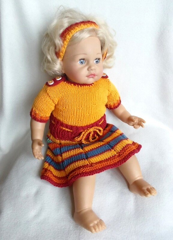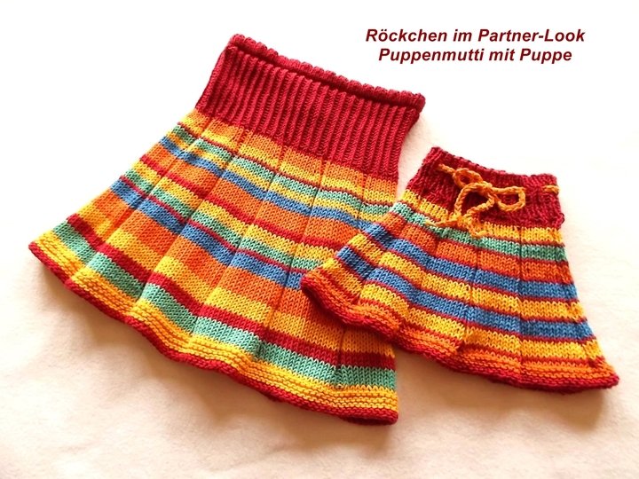 Die Rocklänge kann je nach Größe der Puppe beliebig verändert werden. Wenn man unten mehr Reihen zugibt, müssen evtl. weitere Zunahmen beachtet werden.
