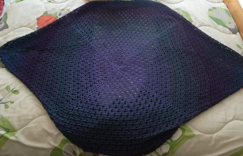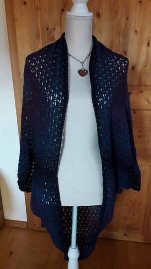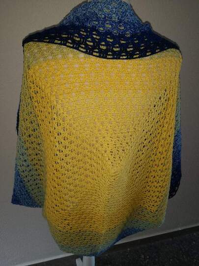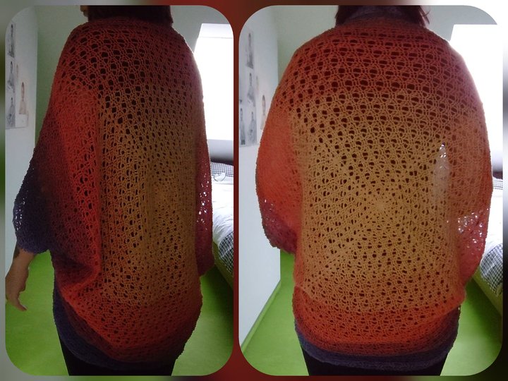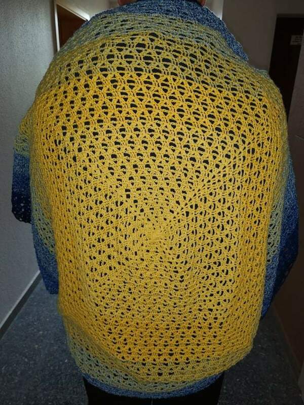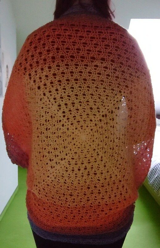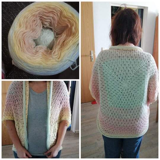 Ich habe für Konfektionsgröße 36 und einer Körpergröße von 1,64m 1200m eines 3fädigen Farbverlaufgarns benötigt.