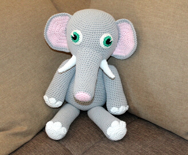 Fertig gehäkelt wird er sitzend ca 35 und stehend ca 55 cm groß.