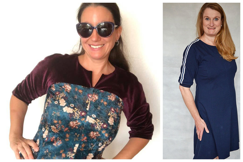 Geeignet sind elastische Stoffe mit Elastan-Anteil oder Jersey. Beim Probenähen sind auch festere Stoffe genäht worden, dann ist aber jeweils eine Größe größer nötig!