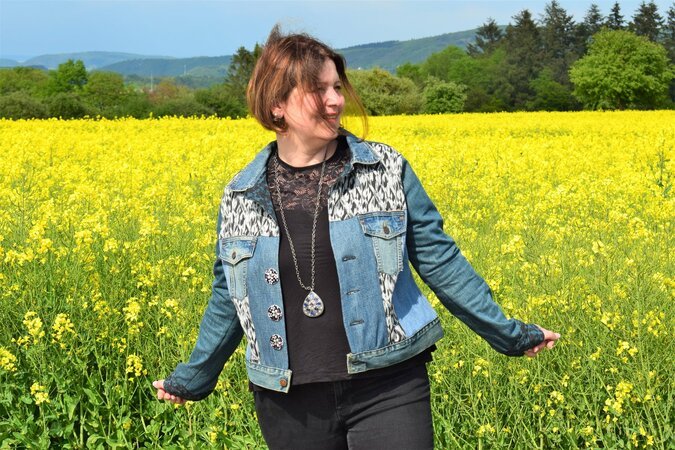 die Jacke wirklich aus Upcycling Material zu machen. Ansonsten bieten sich auch Sweatstoff, Cord, Canvas, Samt, Webware mit und ohne Elasthan, Leder etc. an. Die Jacke kann gut mit Stickereien, Borden, Paspeln, Aufnäher und ähnliche Applikationen aufgepimpt werden!