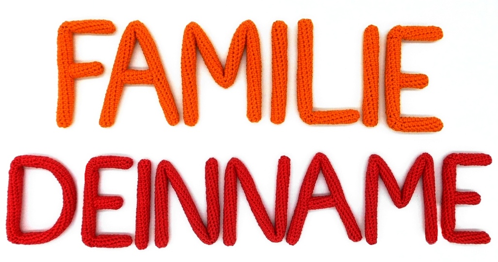 Es kann auch jedes andere Garn mit dazu passender Häkelnadel verwendet werden, die Größe der Buchstaben und der Materialverbrauch ist dann natürlich anders.