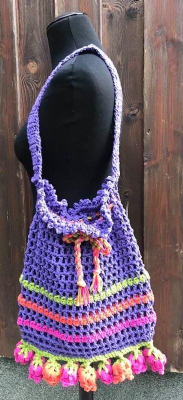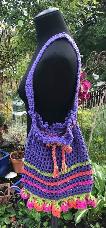 Für die schnelle Tasche mit Blüten nehme ich eine eher dicke Wolle..dann ist die Tasche auch schnell gehäkelt....! Ein prima kurzfristiges Mitbringsel..oder wenn man noch schnell zum Einkaufen will...( okay, SO schnell geht sie dann doch auch wieder nicht...!)