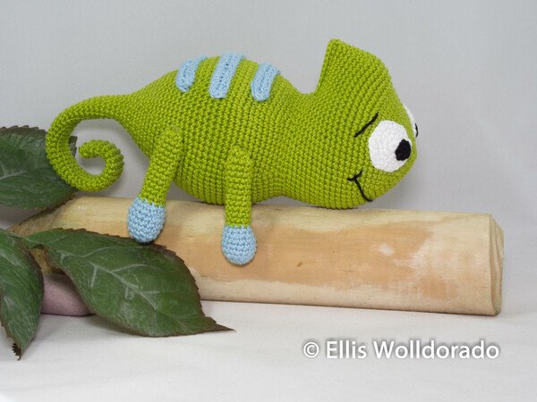 Mit Hilfe der hier erhältlichen Anleitung kannst Du Dir ein eigenes Chamäleon häkeln.