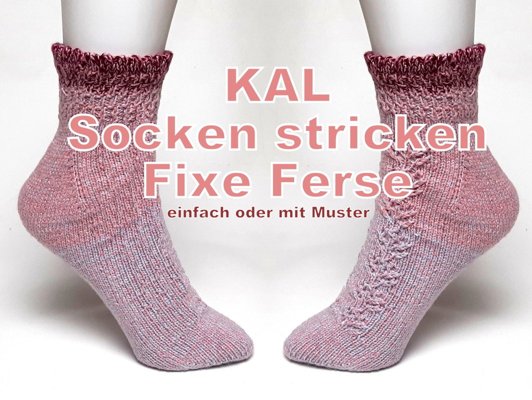 KAL= knit along = Wir stricken zusammen die Toe-Up Socke (von unten nach oben) mit der Fixen Ferse. Sie kann wahlweise mit oder ohne Muster gestrickt werden.