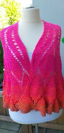 Das Tuch Pink Flower ist der perfekte Begleiter für laue Sommerabende - und mit Stäbchen sowie Luftmaschen fix gehäkelt.
