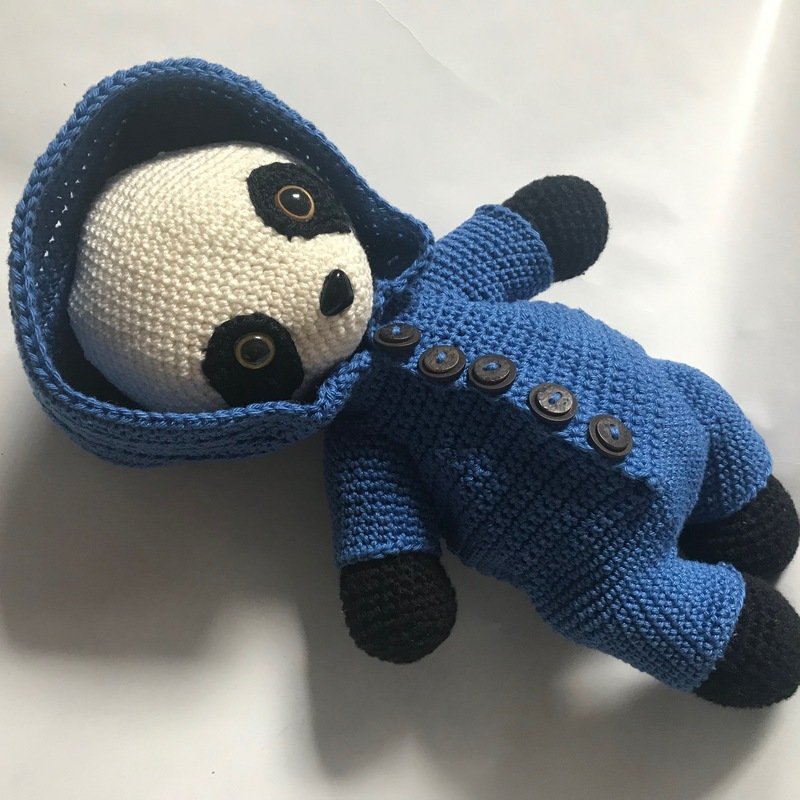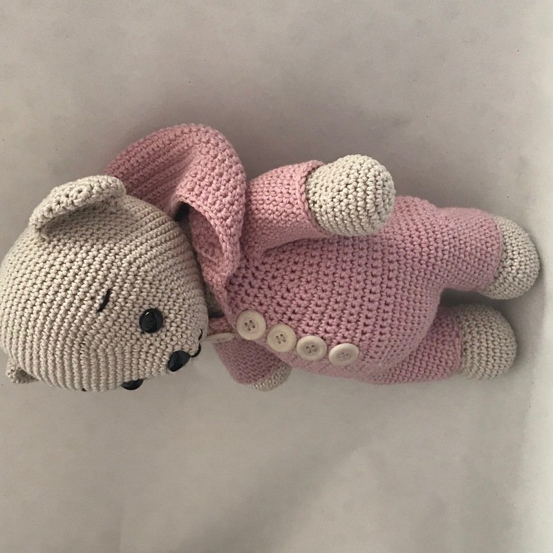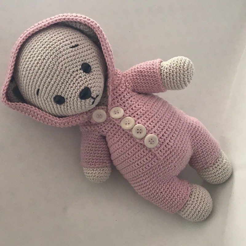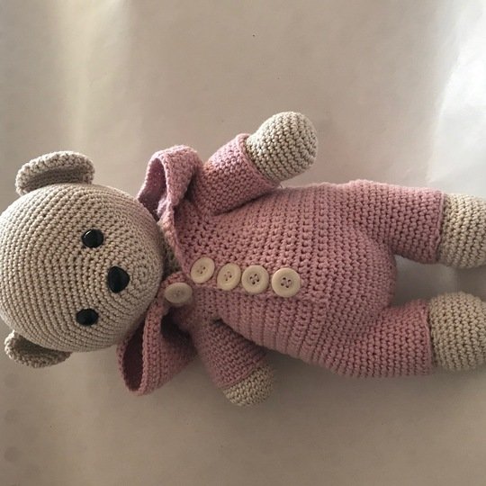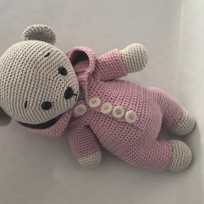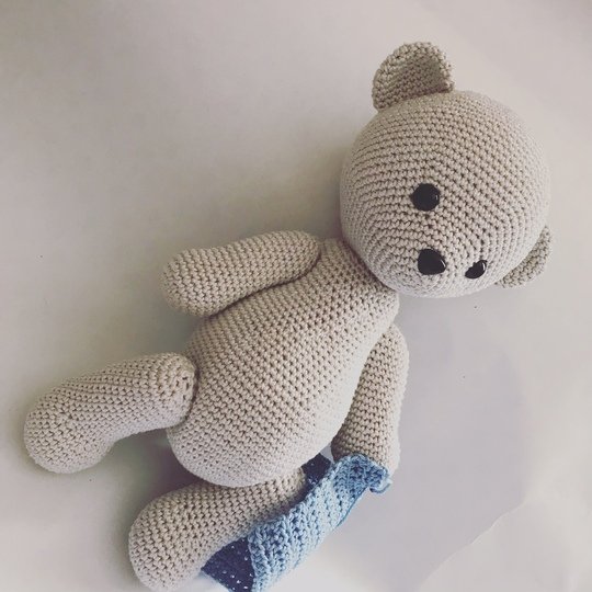 Häkelanleitung für einen Teddybären mit beweglichen Armen und Beinen im Schlafanzug