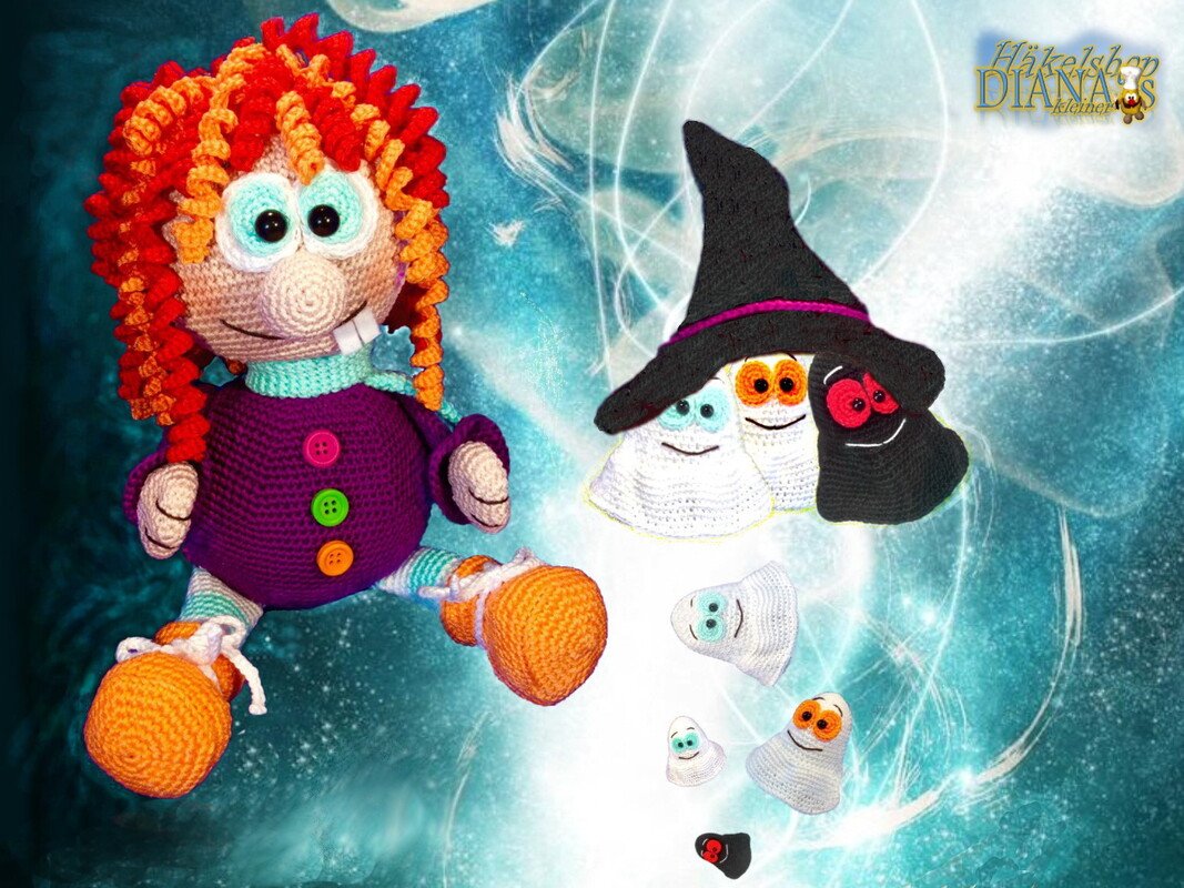 Häkelanleitung "Hexe Elvira mit Geisterbande" von Diana´s kleiner Häkelshop