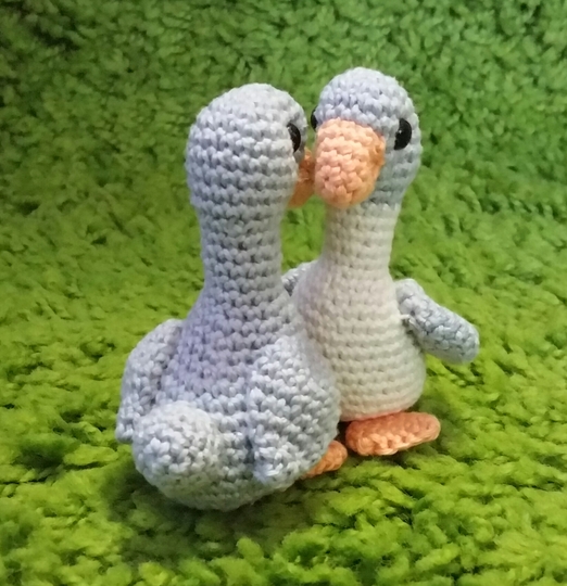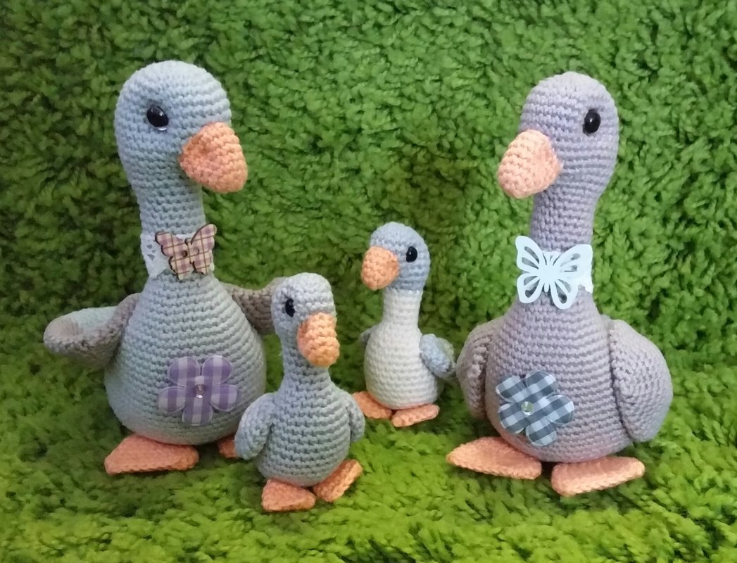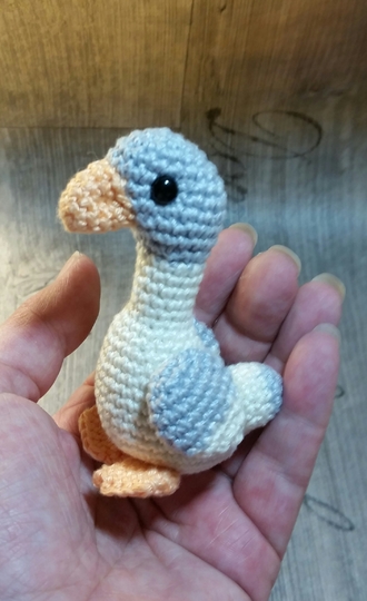 Die Gans wird mit der angegebenen Wolle ca. 9 cm groß.