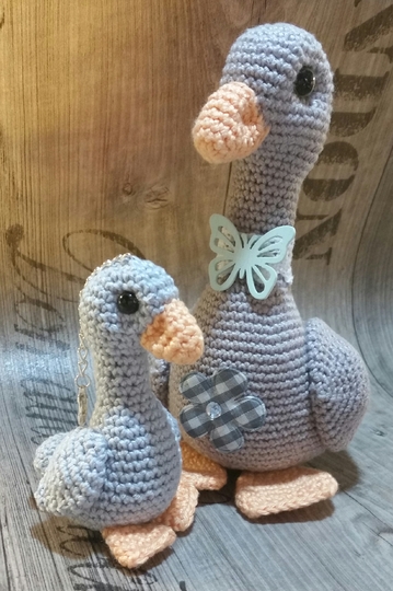 Sie macht sich Prima an deiner Tasche, auch als Geschenk macht sie eine "Gänsige " Figur.