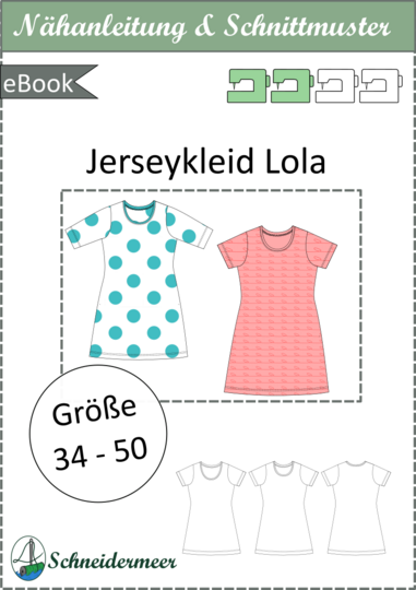 Das Modell „Lola“ ist ein figurbetontes Jerseykleid mit leicht ausgestelltem Rocksaum. Es hat eine A-Linienform, liegt eng am Oberkörper an und fällt locker am Saum. Die Länge ist knieumspielend.