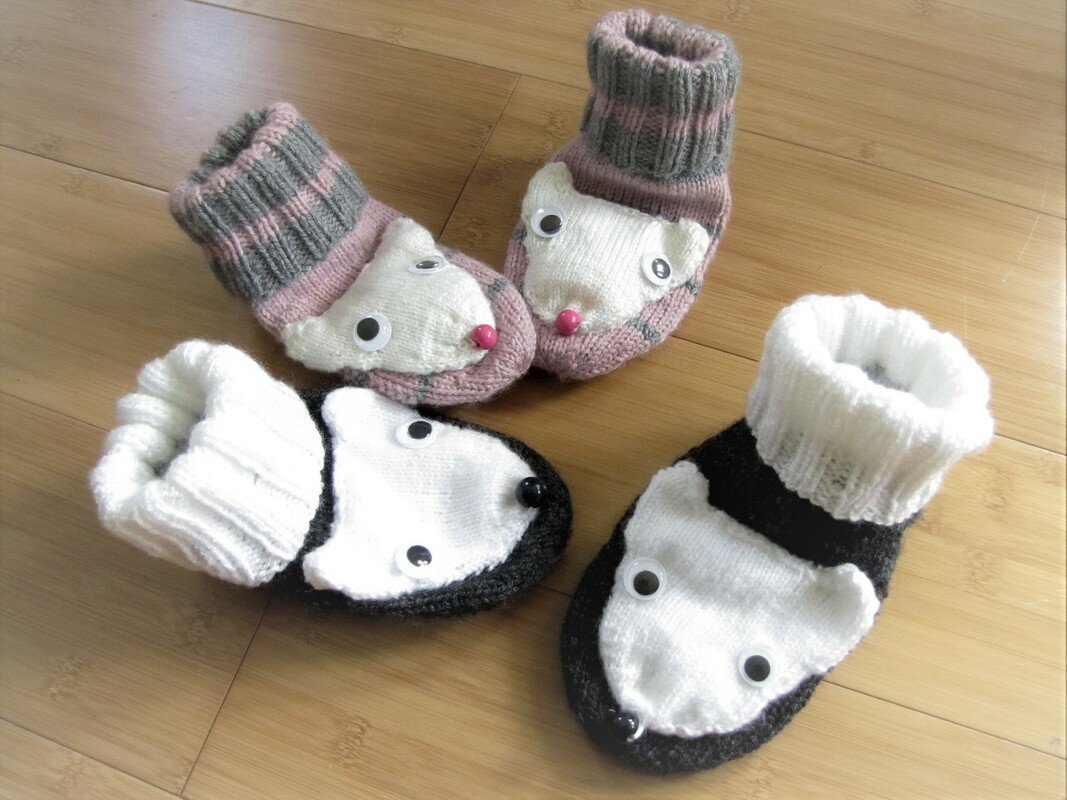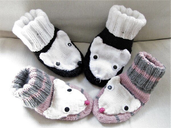 Diese kleinen Mäuse kannst du in der Größe 22 bis 24 stricken.