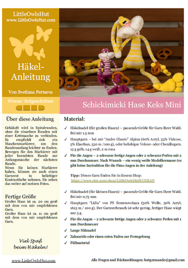 Strickanleitung finden Sie hier - https://www.crazypatterns.net/de/items/59433/137de-strickanleitung-amigurumi-schickimicki-hase-keks-pdf-pertseva-cp