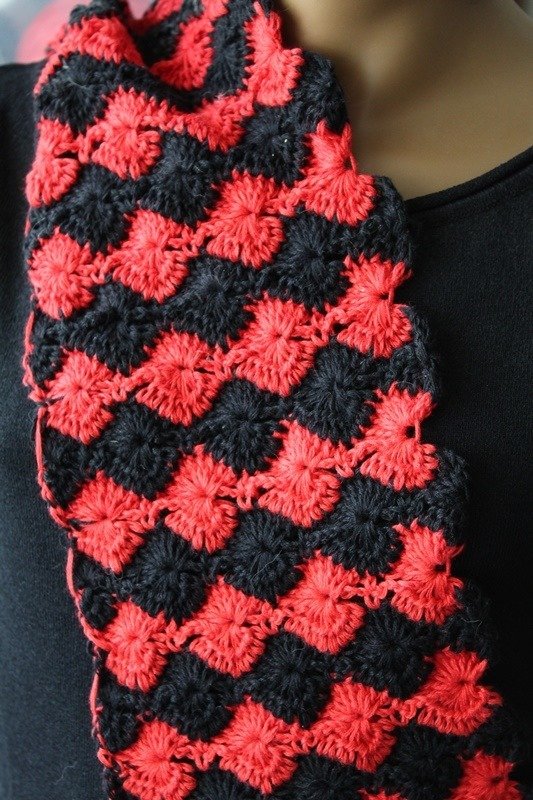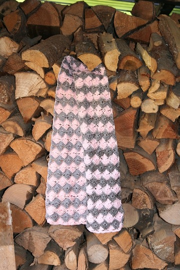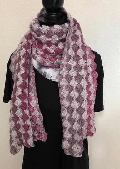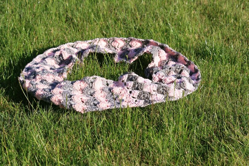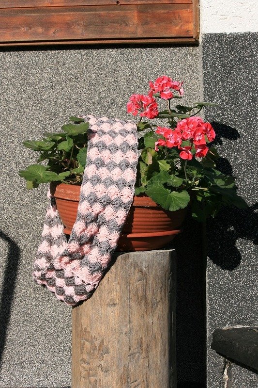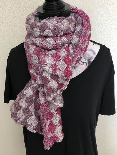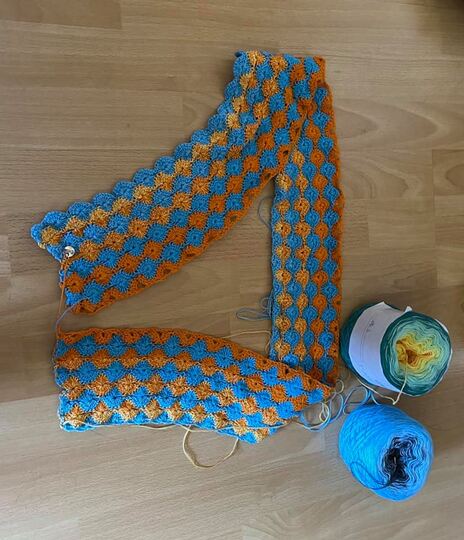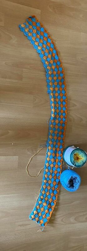 Und das Muster ist auch variabel, ob ihr das über die lange Seite häkelt, oder die schmale Seite nehmt, kommt drauf an, wie ihr den Farbverlauf haben wollt. Außerdem hat man noch die Möglichkeit den Schal als Loop oder als Möbius nach der Fertigstellung zusammenzunähen/-häkeln.