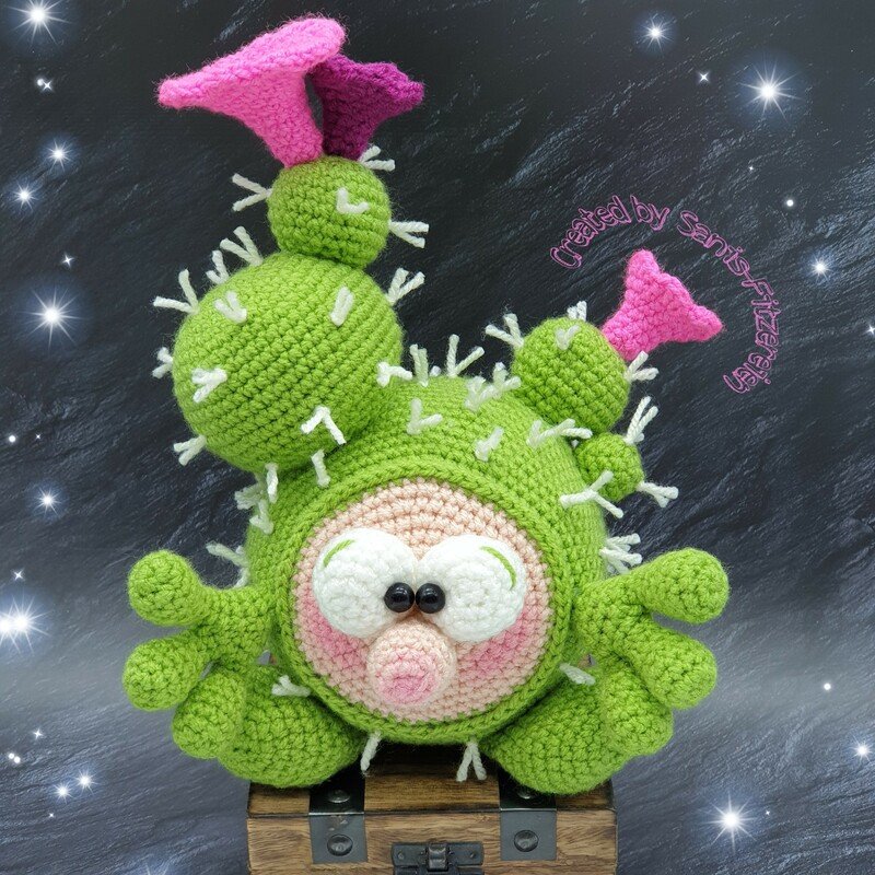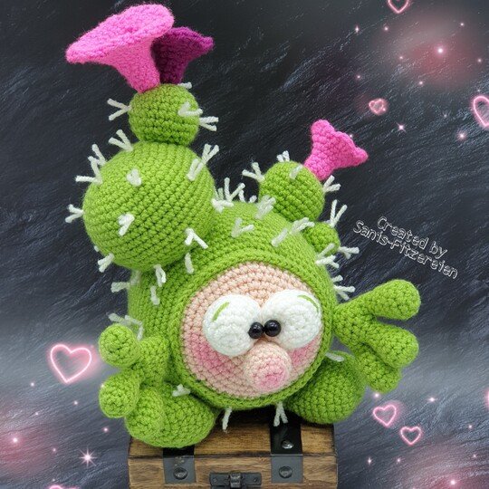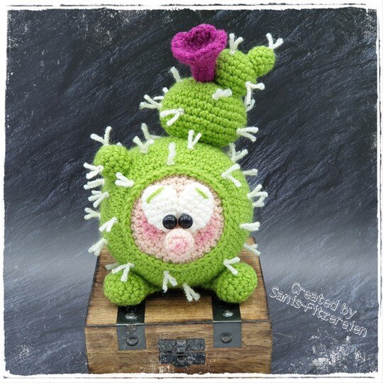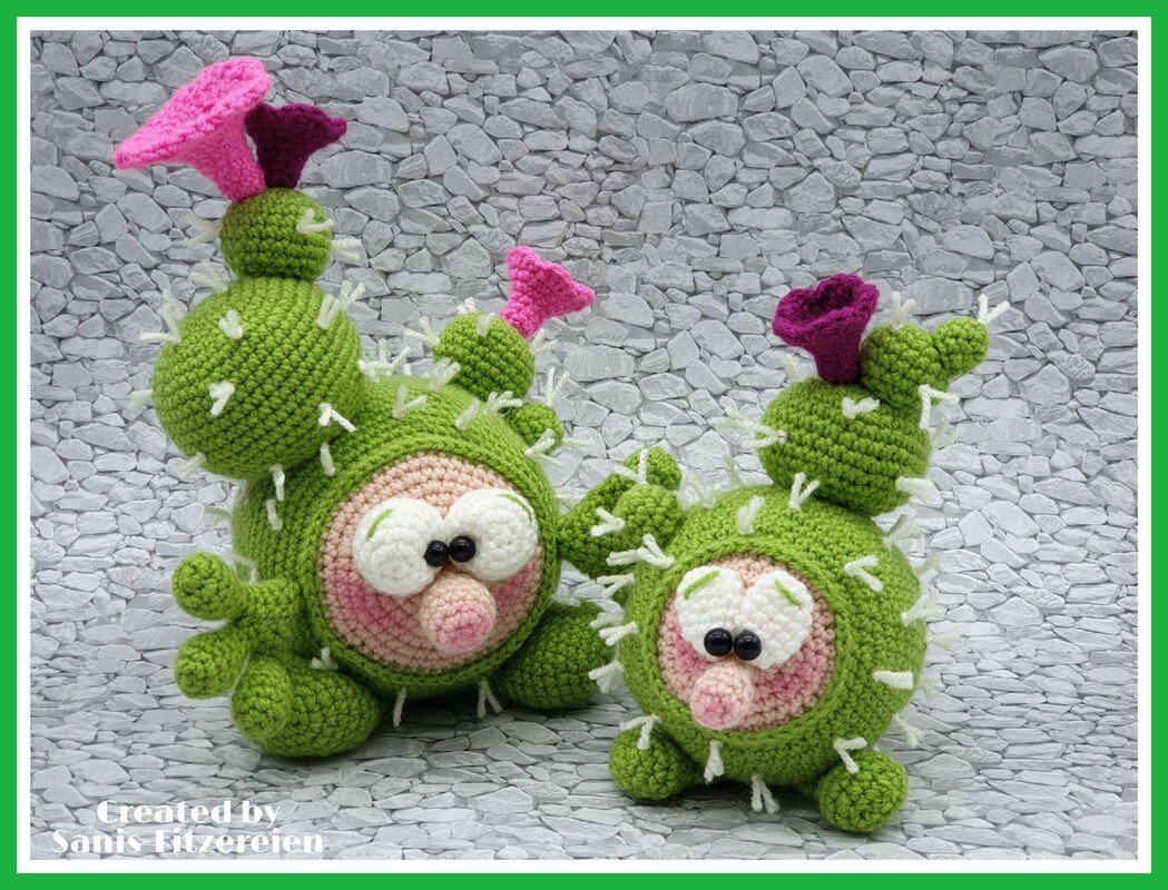 Mit der angegebenen Wolle wird das große Kaktinchen ca. 23 cm groß und das Kleine ca. 17 cm. Bei Verwendung anderer Wolle, kann die Größe der Häkelfigur variieren.