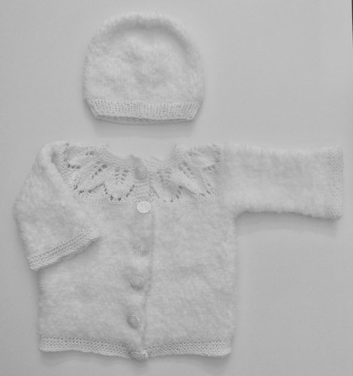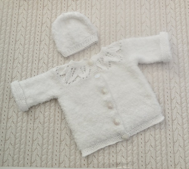 Das Set ist aus Baumwolle und Teddywolle gestrickt und ist kuschelig weich, aber nicht zu dick.