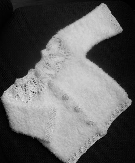 Die Jacke wird in einem Stück gestrickt, nur die Ärmel werden am Schluß angestrickt! Man muss also keine Nähte zusammennähen.