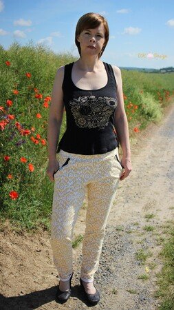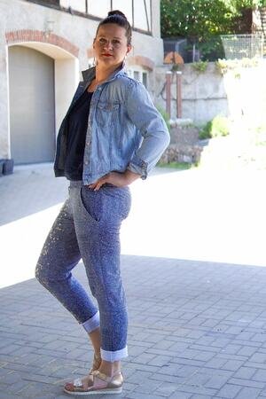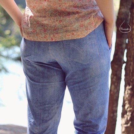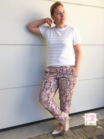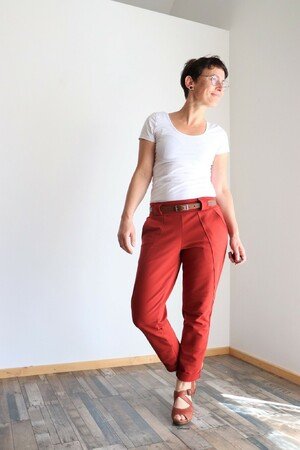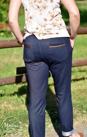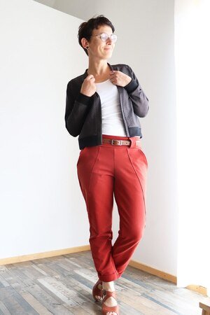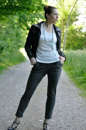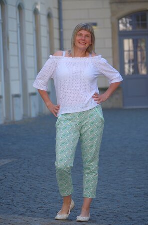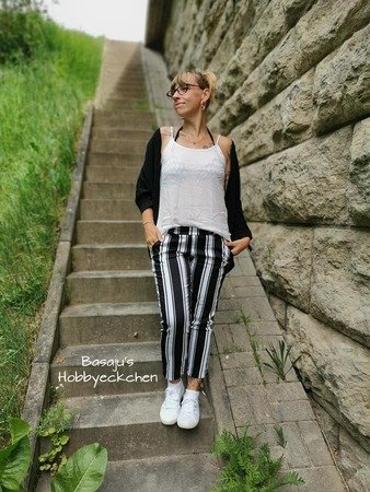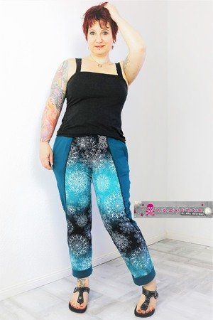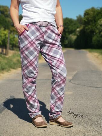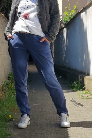 Varianten: Fake-Reißverschluß, Gesäßtaschen, Gürtelschlaufen, Teilung Vorderhose, verschiedene Bundhosen, Saum oder Bündchen