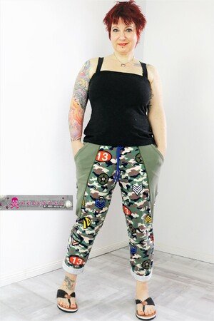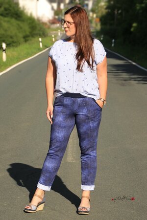 Die Hose gibt es von Gr. 34-54 ( 54 entspricht einen Hüftumfang von 129 cm