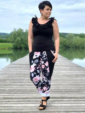 Tenna ist ein lässig, bequemer Hosenschnitt mit einer raffinierten Teilung. Egal ob zum Sport oder für die City zum Shoppen. Von sportlich bis schick ist alles dabei.