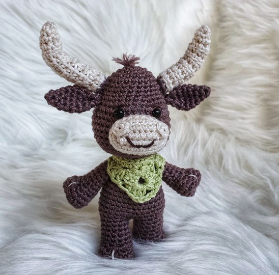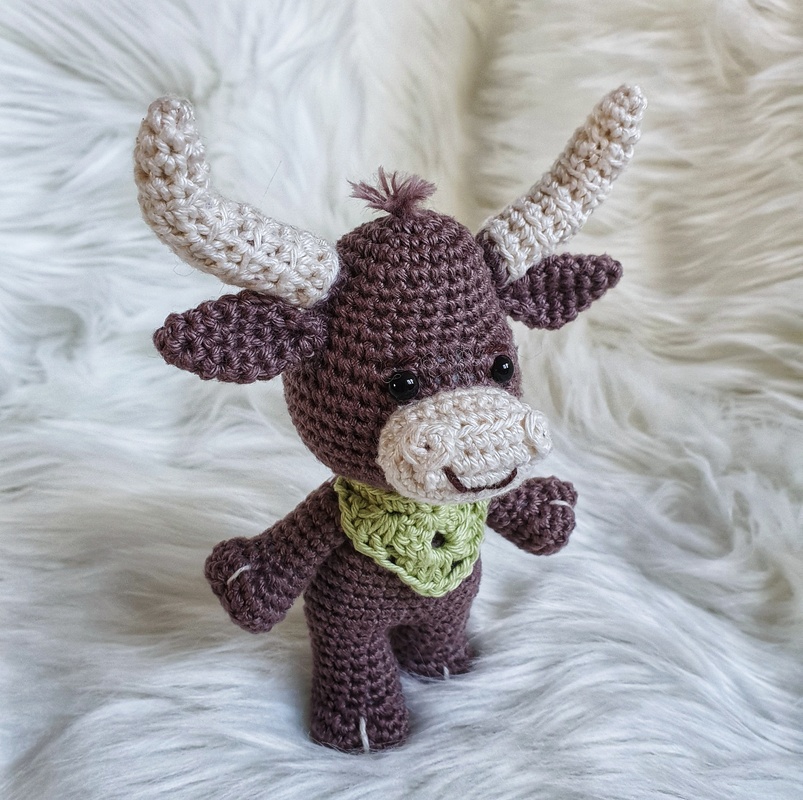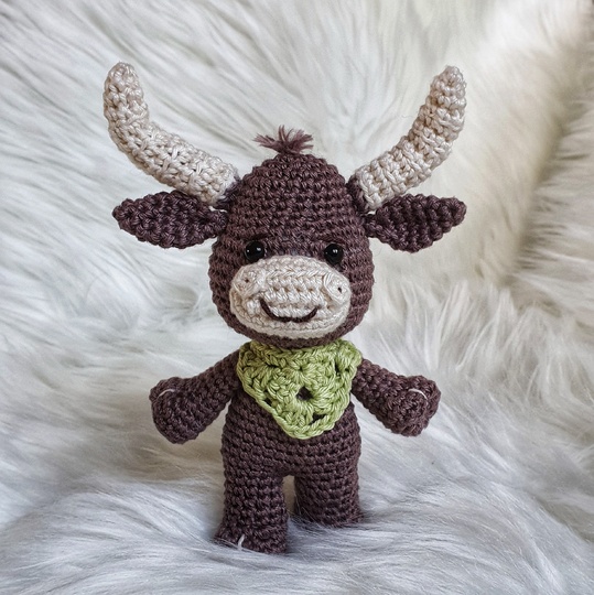Die Größe des Stiers beträgt ca. 17cm mit Hörnern.