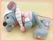 Ich habe das Mäuschen mit Acrylgarn der Stärke 2-3 und einer Häkelnadel der Stärke 2 gearbeitet und es hat bei mir sitzend eine Größe von ca. 19 cm.