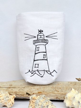 kleine Stoffbeutel mit maritimen Motiven, in die ein LED Teelicht eingestellt werden kann. Süße Deko für die Fensterbank, den Kaffeetisch und als Dekoration im Sommer auf Balkon und Terrasse.