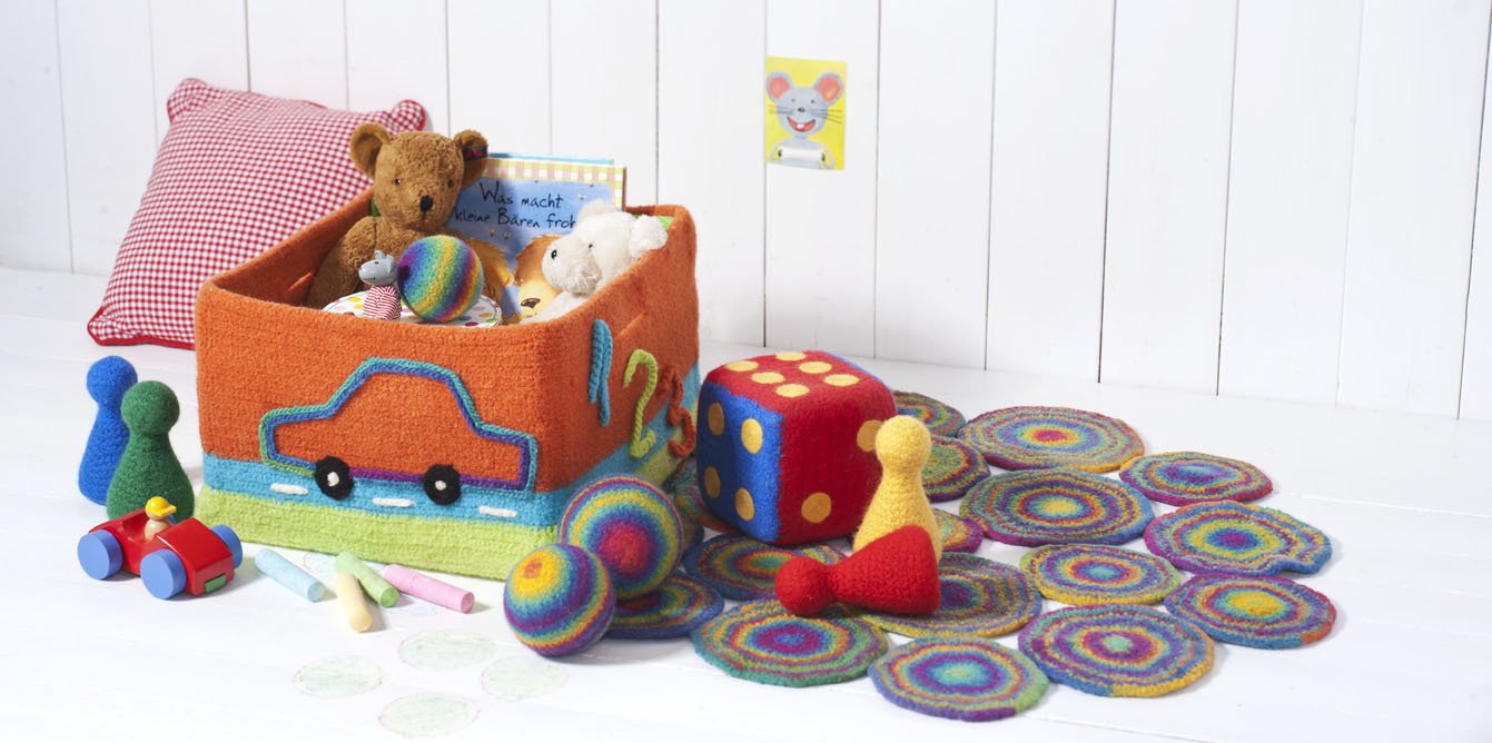 Herkömmliche Filzwolle, meist 50 m Lauflänge auf 50 g