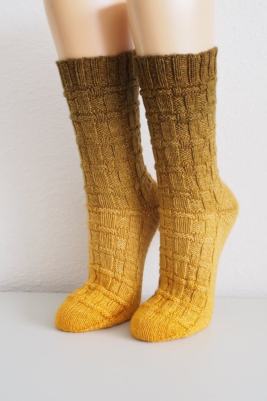 Diese Socken haben ein einfaches Flechtmuster, welches auch sehr gut für