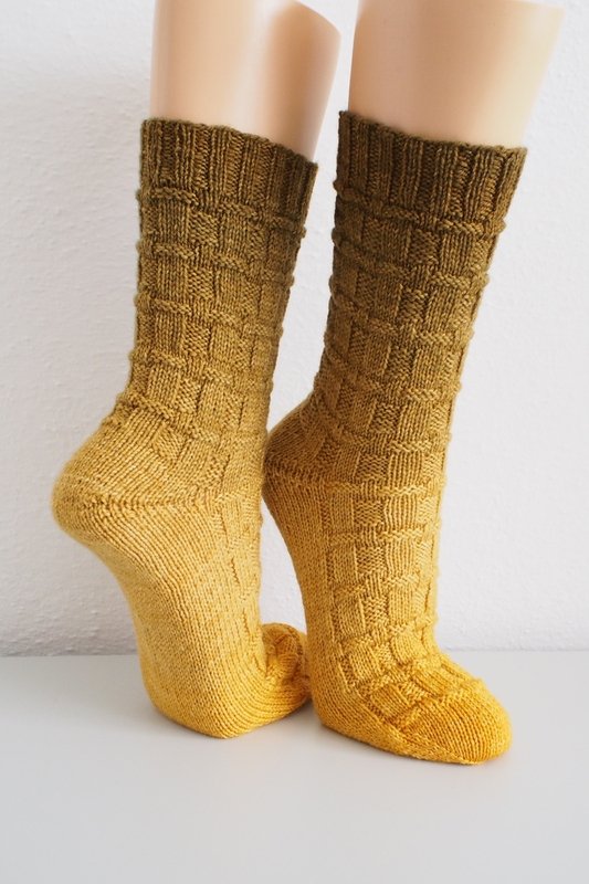 Anfänger geeignet ist. Es ist sehr einprägsam und lässt sich schnell merken. Der Schaft lässt sich beliebig verlängern oder verkürzen, beide Socken werden gleich gestrickt.