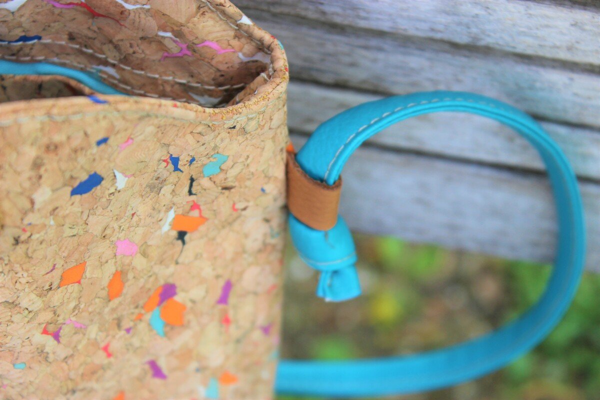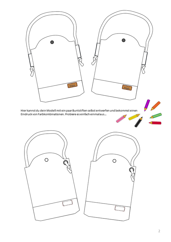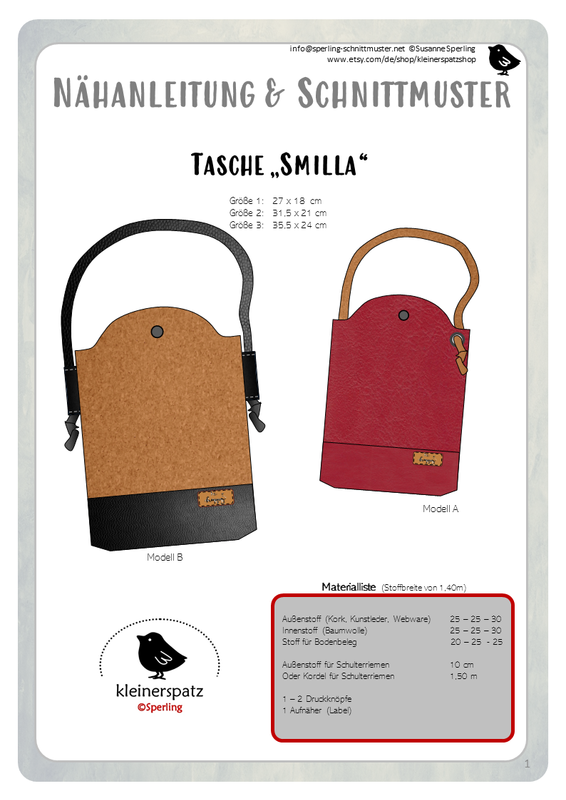 Tasche "Smilla" ist eine praktische und schlichte Tasche, die durch den gebogenen Taschenrand eine trendige Form bekommt. Durch das schmale und schlanke Design könnt ihr sie wunderbar zu jedem Outfit kombinieren und die Länge des Schulterriemens immer wieder variieren. Das Schnittmuster ist in drei Größen enthalten, so dass ihr von kleiner Abendtasche bis zum Shopper alles ausprobieren könnt. Besonders schön wirkt dieses Taschenmodell, wenn ihr den Taschenstoff verstärkt. So behält die Tasche später ihre Form und der Rand kommt besonders gut zur Geltung. Die Abbildungen zeigen die Verarbeitung mit Lederimitat (orange) und Korkstoff (abgesetzt mit türkisfarbenem Lederimitat).