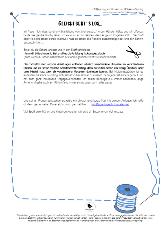 Das Schnittmuster ist in jeder Größe vollständig abgebildet, so könnt ihr gleich loslegen und braucht nichts vorher abzupausen. Alle Arbeitsschritte sind mit einer detaillierten Zeichnung versehen und genau beschrieben. So können sich auch Nähanfänger an dieses schöne Projekt heranwagen.