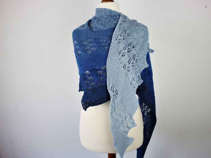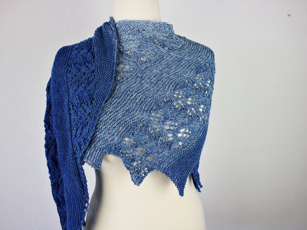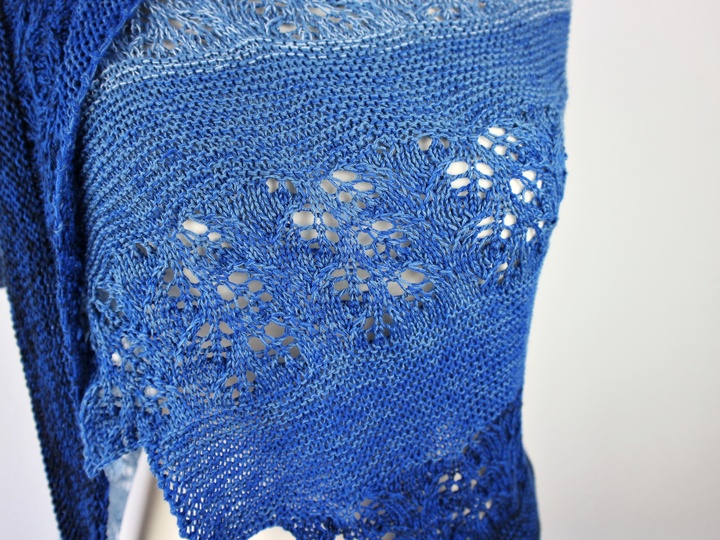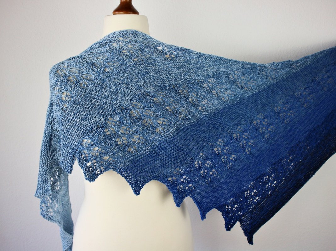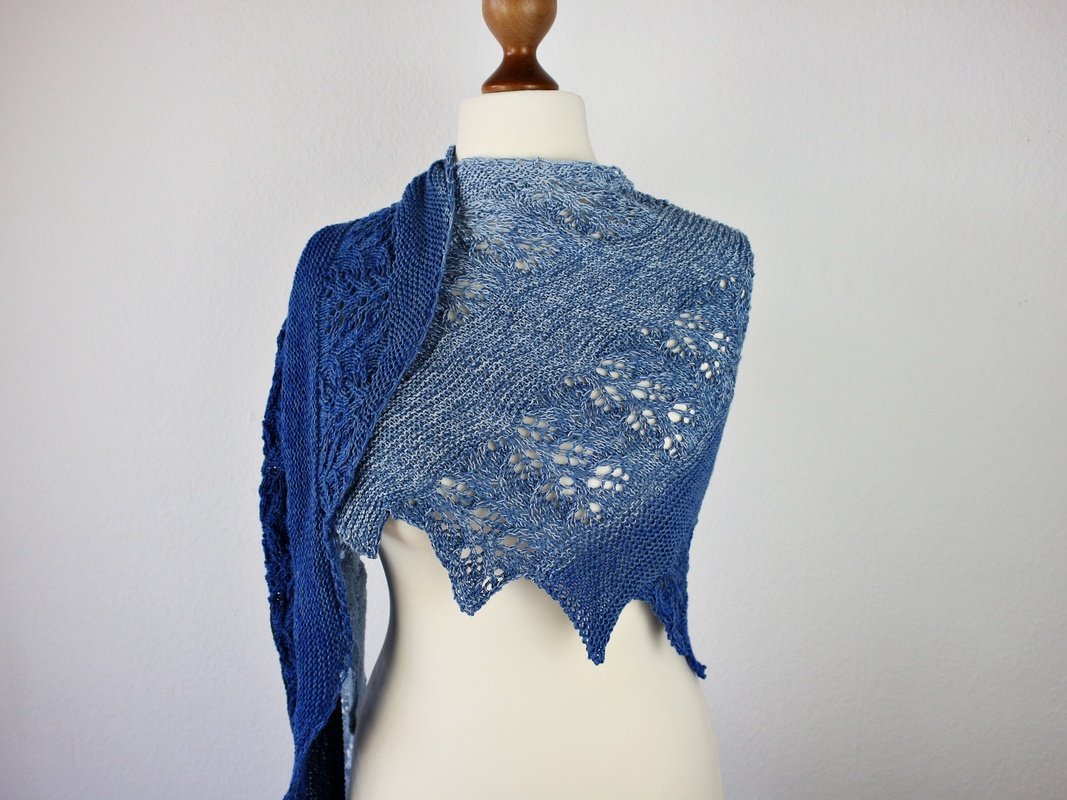Das leichte Schultertuch hat ein blumiges Ajourmuster mit eingestrickt, dass auch etwas geübte Anfänger sehr gut meistern können.
