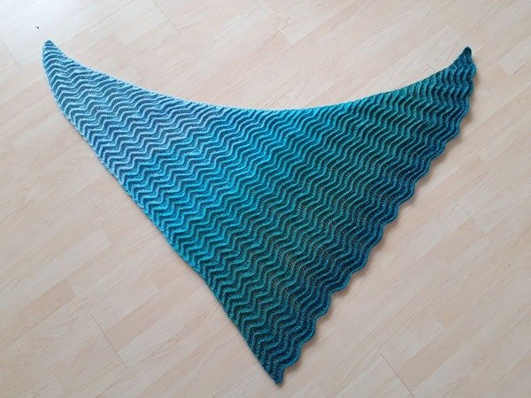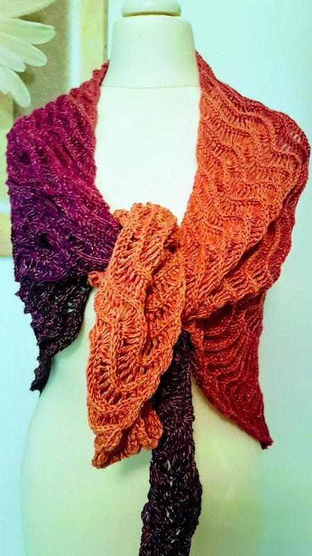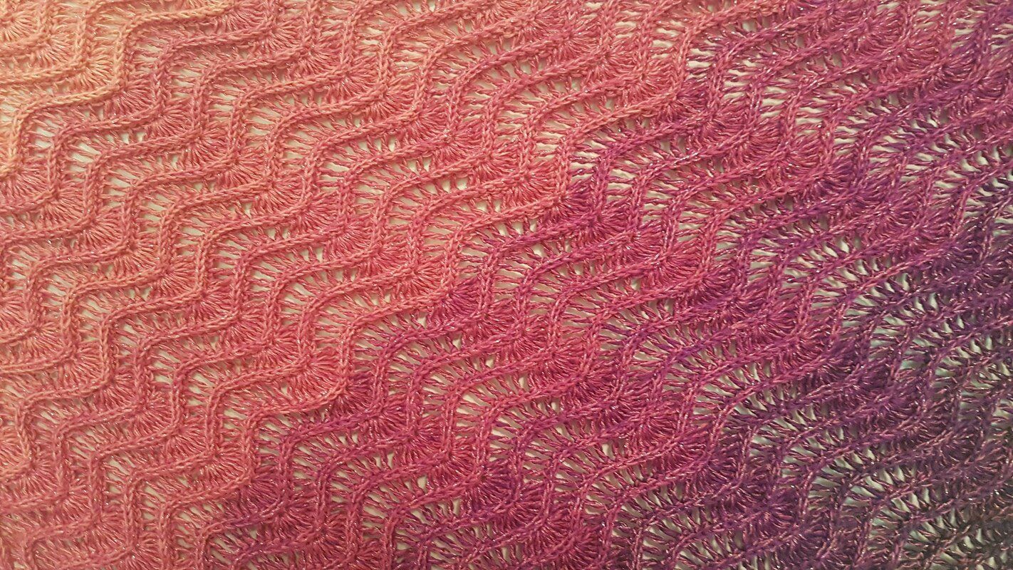 Das Muster ist recht eingängig, etwas konzentrieren muss man sich schon - wird dann aber mit einem wunderschönen Tuch belohnt.