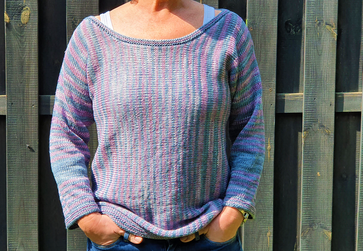 Kristina ist ein sehr einfach zu strickender Pullover mit Längsstreifen - das perfekte Projekt für Strickanfänger. Das Modell auf den Fotos wurde aus reiner Baumwolle gestrickt, der Pulli sieht aber auch als Winterpullover in reiner Wolle sehr gut aus.