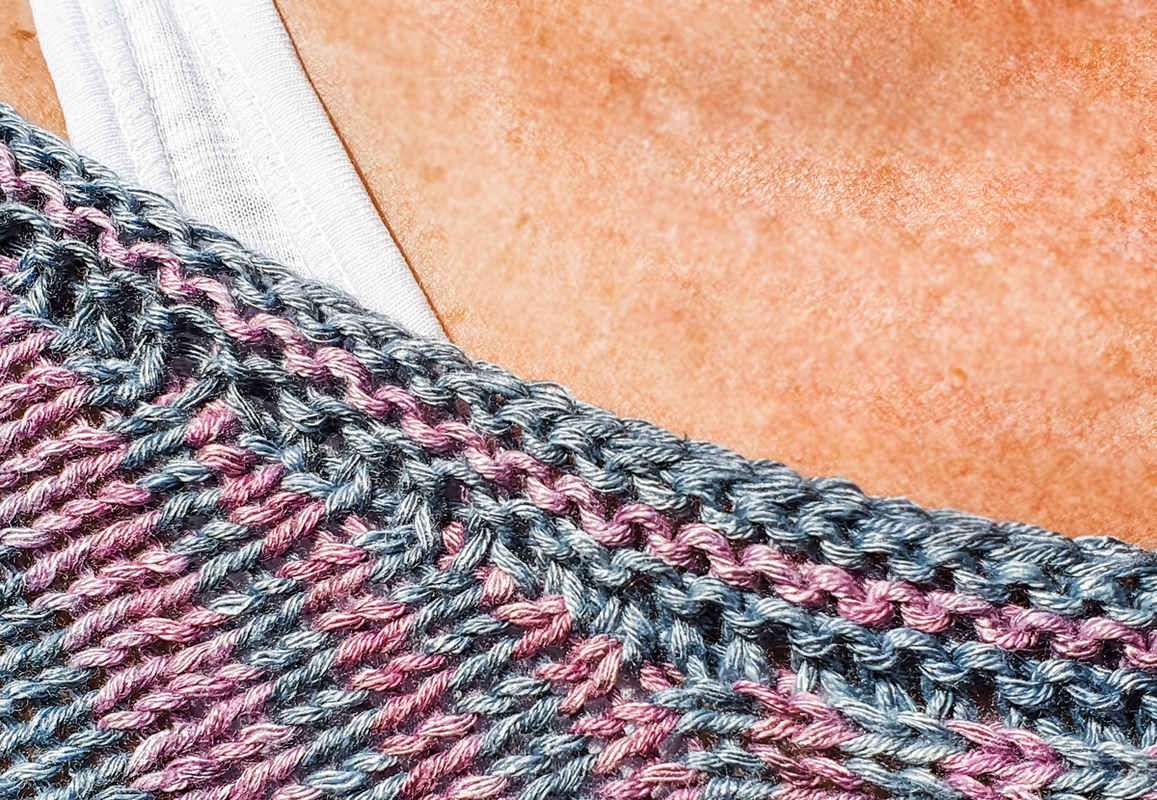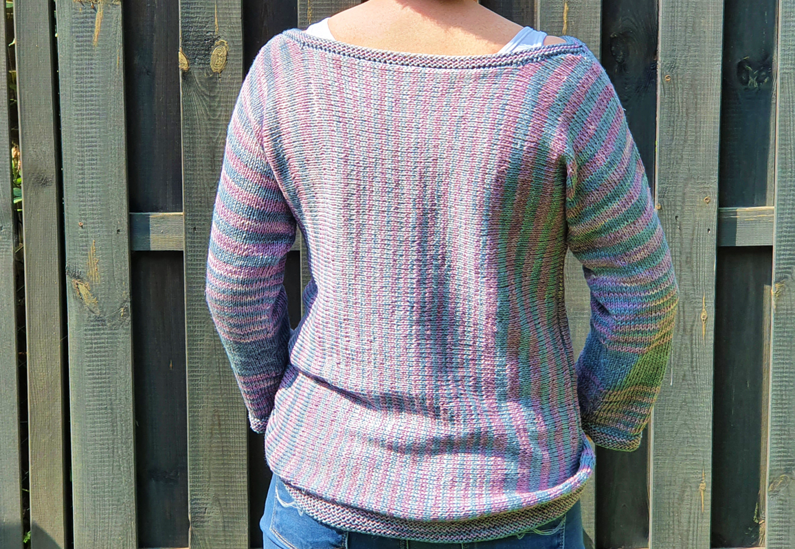 Vorder- und Rückenteil werden quer gestrickt, wodurch die Längsstreifen ganz einfach entstehen. Anschließend werden die Ärmel direkt an Vorder- und Rückenteil gestrickt (von oben nach unten).