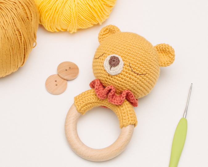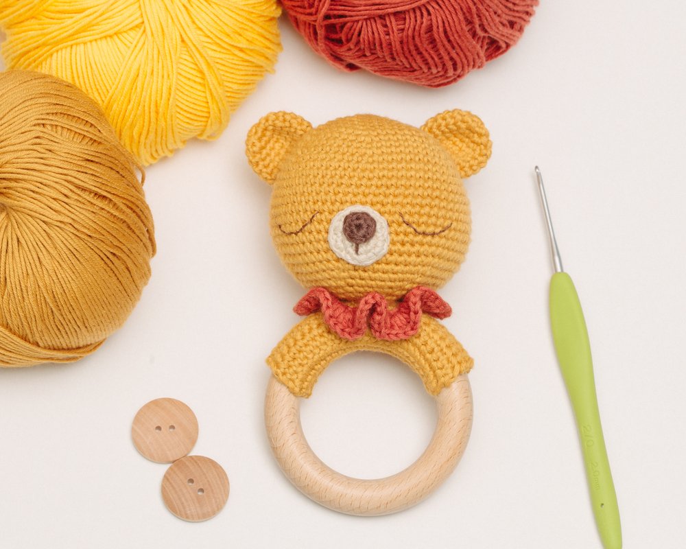 Mit dieser Häkelanleitung kannst du deine eigene Bär Rassel häkeln.