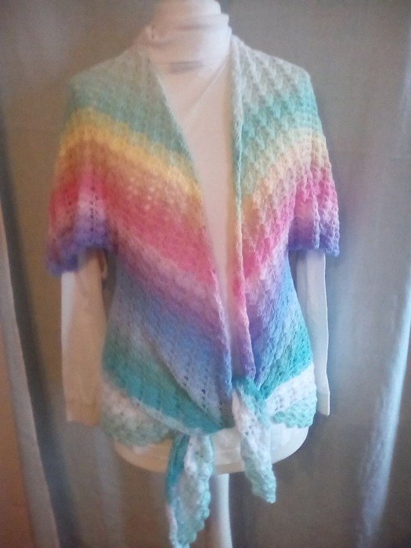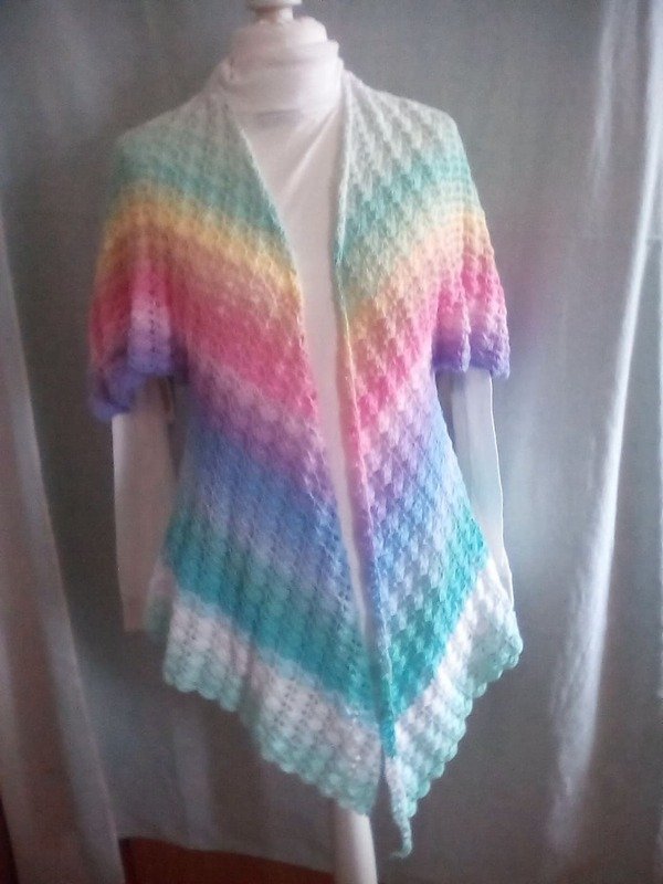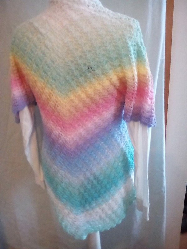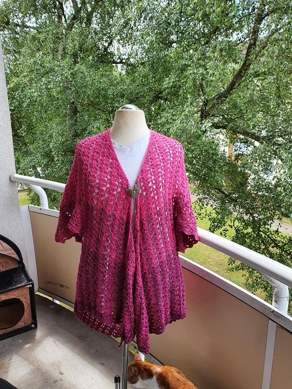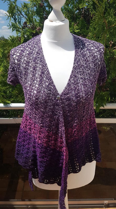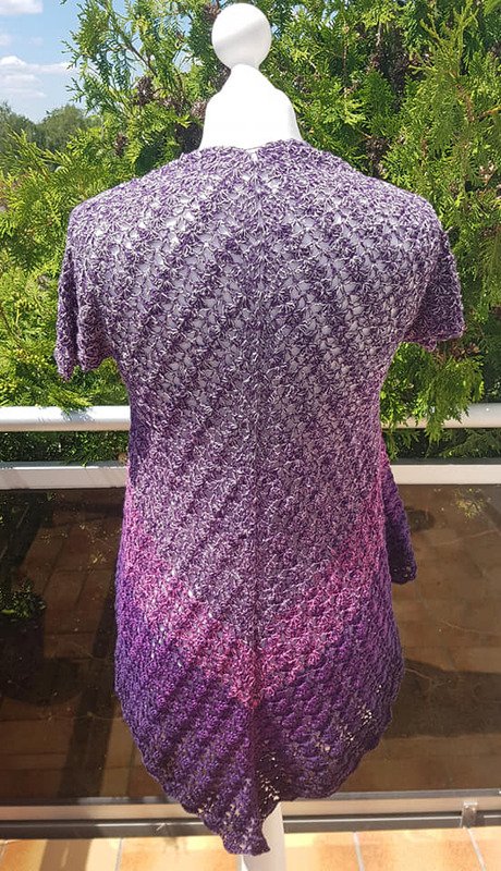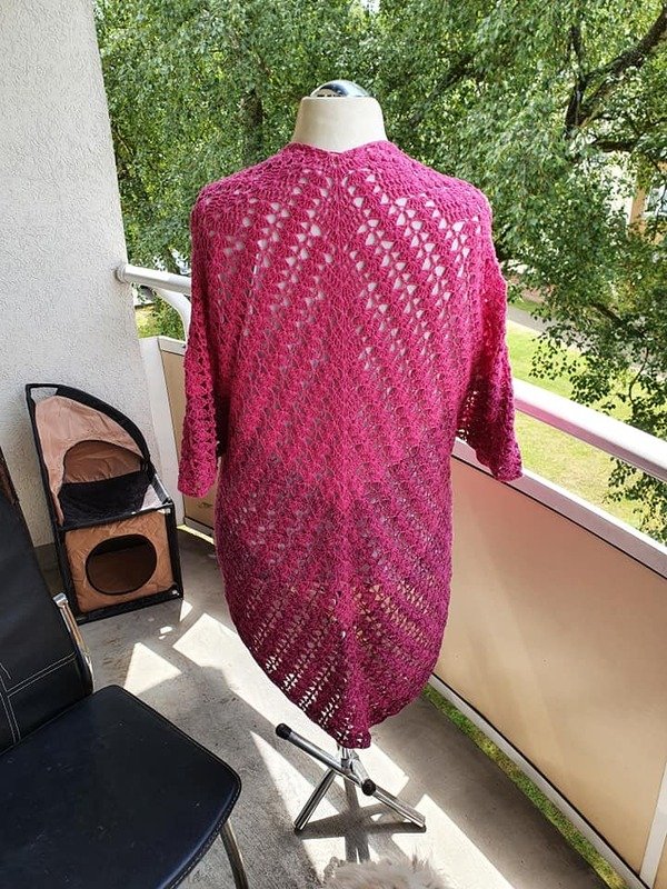 Die Anleitung ist in Größe 44 geschrieben. Kann aber in jeder beliebigen Größe gehäkelt werden.