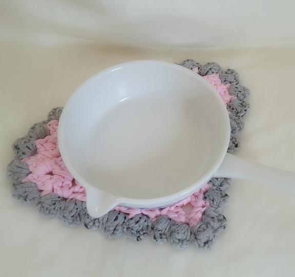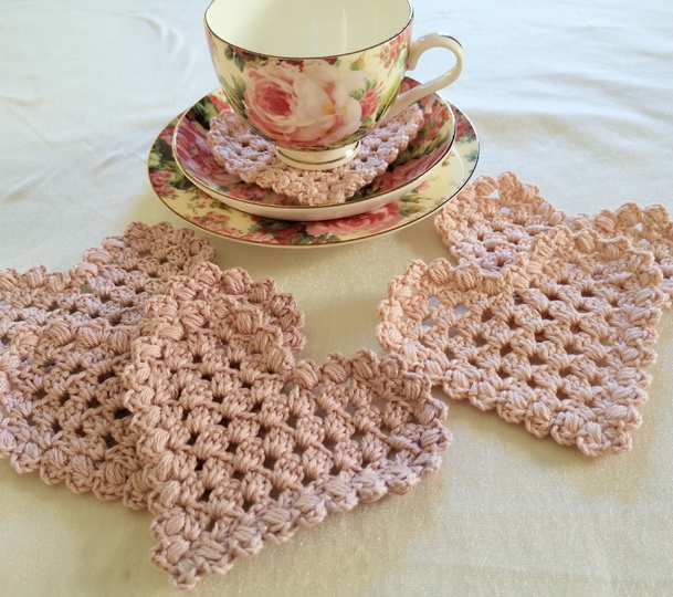 Die Untersetzer werden mit Stäbchen, Luftmaschen und Popcornmaschen gearbeitet.
