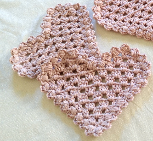 Diese süßen Untersetzer in Herzform sind zum Beispiel als kleine Geschenk oder für die eigene Küche schnell gehäkelt.