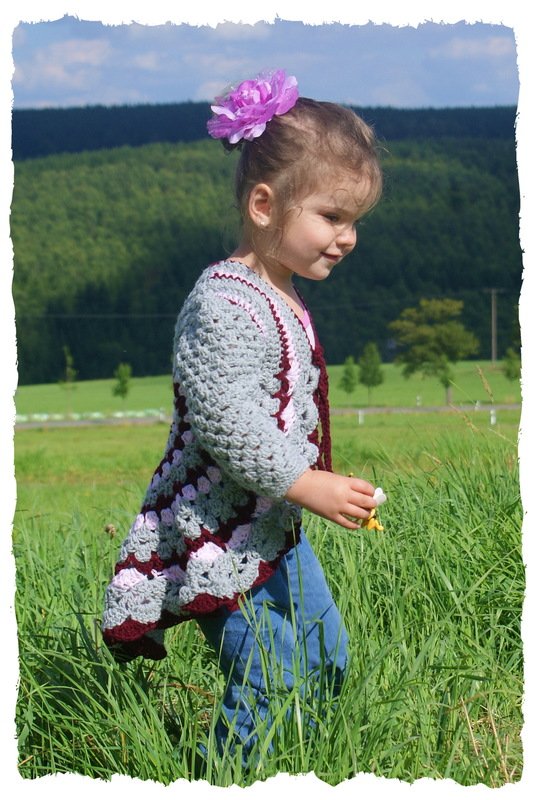 Die Ärmel kannst du weglassen, dann hast du eine coole Weste, oder du arbeitest einen kurzen oder ein langen Ärmel, so kann das Jäckchen auch an kühleren Tagen getragen werden. Ich arbeite meist einen kurzen Ärmel, denn dann kann die Weste mit einem Rolli an kälteren Tagen und bei wärmeren Tagen über einem Top getragen werden, also was für jedes Wetter.