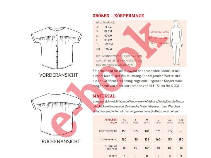 Umfang: Nähanleitung - 13 Seiten , Schnittmuster - 15 Seiten (die zusammengeklebt werden müssen), Plotterdatei mit dem Bogen in Originalgröße