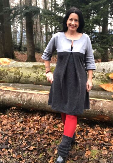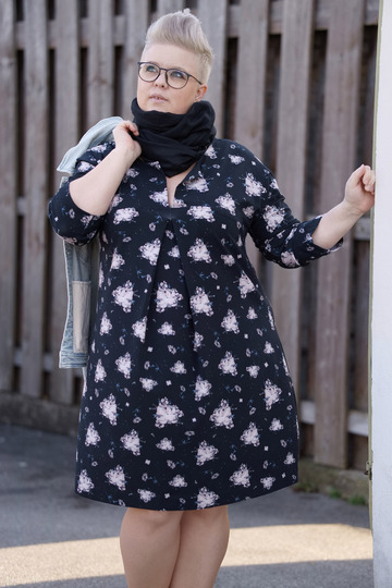 Der Schnitt wirkt bei kleinen Größen etwas figurbetonter, in den größeren Größen lässig und lässt schlanker wirken. Hier spielt aber auch die Auswahl des Stoffes eine entscheidende Rolle.