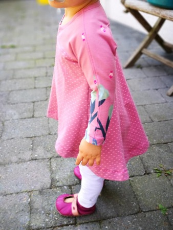 Geeignet sind elastische Stoffe mit Elastan-Anteil oder Jersey. Beim Probenähen sind auch festere Stoffe genäht worden, dann ist aber jeweils eine Größe größer nötig!