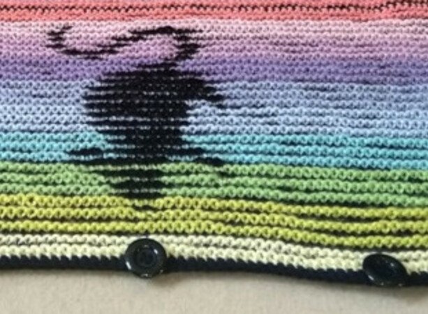 Rückenteil und Vorderteile sind einfache Rechtecke, aber du solltest in der Lage sein, diese für deine Größe anzupassen und die Anleitung entsprechend abzuändern. Die Jacke kann beliebig vergrößert werden. Wenn du sie schmäler haben möchtest, müsstest du auf eine dünnere Wolle und dünnere Nadeln zurückgreifen, damit das Motiv auch dann komplett erscheinen kann.