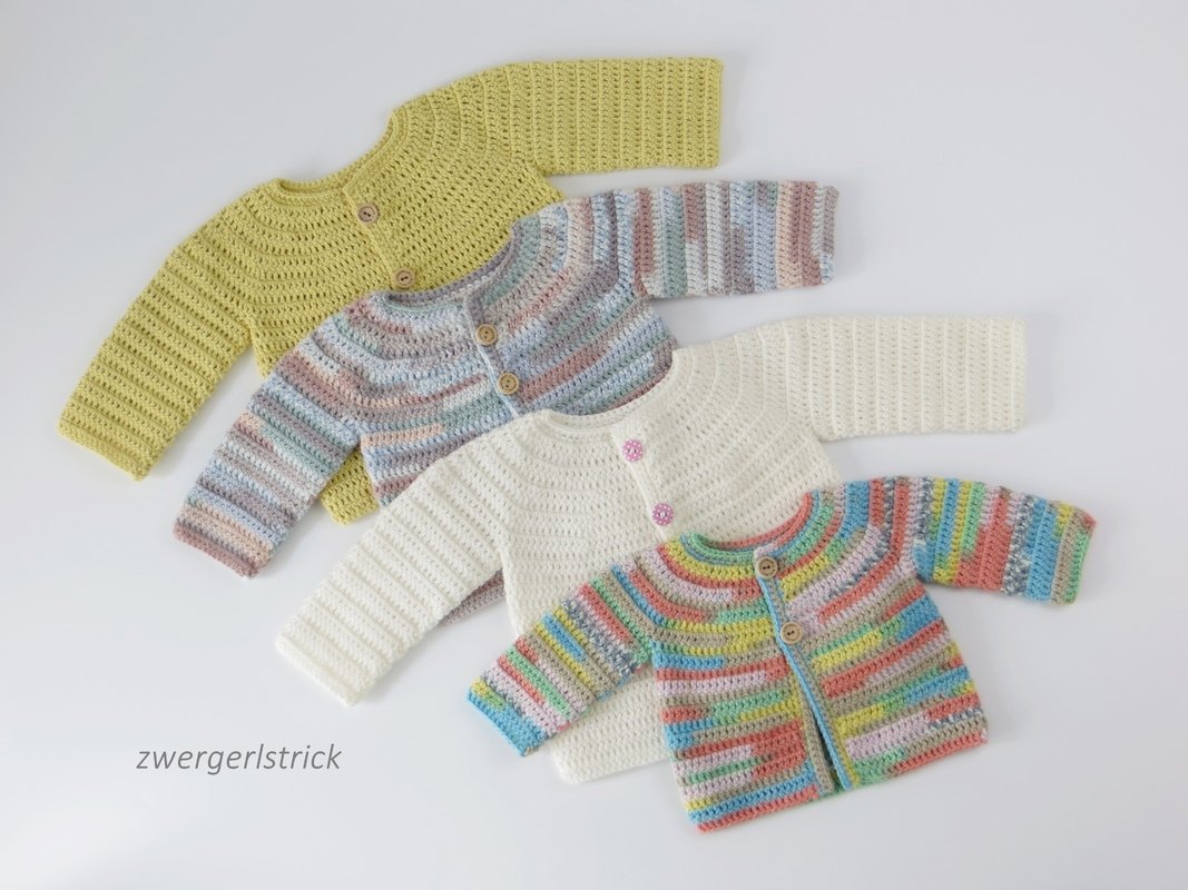 Häkelanleitung für Baby-Jäckchen mit Rundpasse in 3 Größen ( 0 bis ca. 6 Mon. )