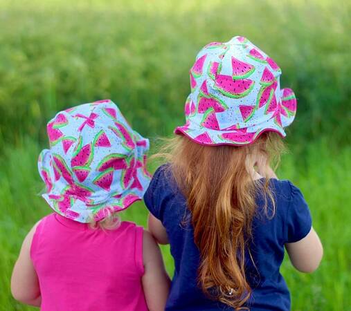 Genähte Sonnenhüte nach diesem Schnittmuster dürfen in unbegrenzter Stückzahl gewerblich verkauft werden – eine gesonderte Lizenz wird nicht benötigt.